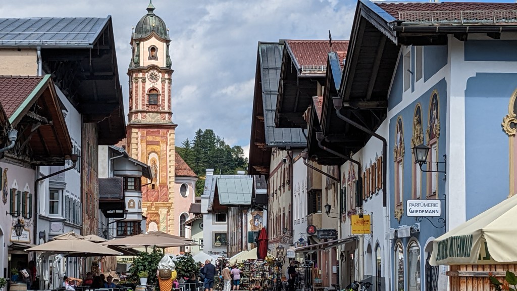 Mittenwald begeistert mit seinem komplett bemalten Kirchturm, eindrucksvollen Lüftlmalereien und einer reichen Geschichte zu Handel, Geigenbau, Tradition und Isarflößerei.