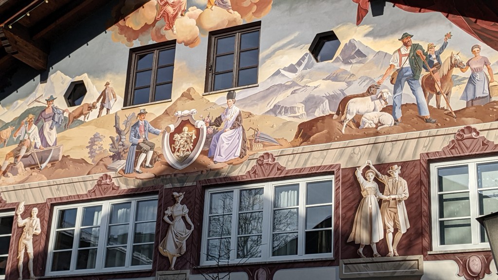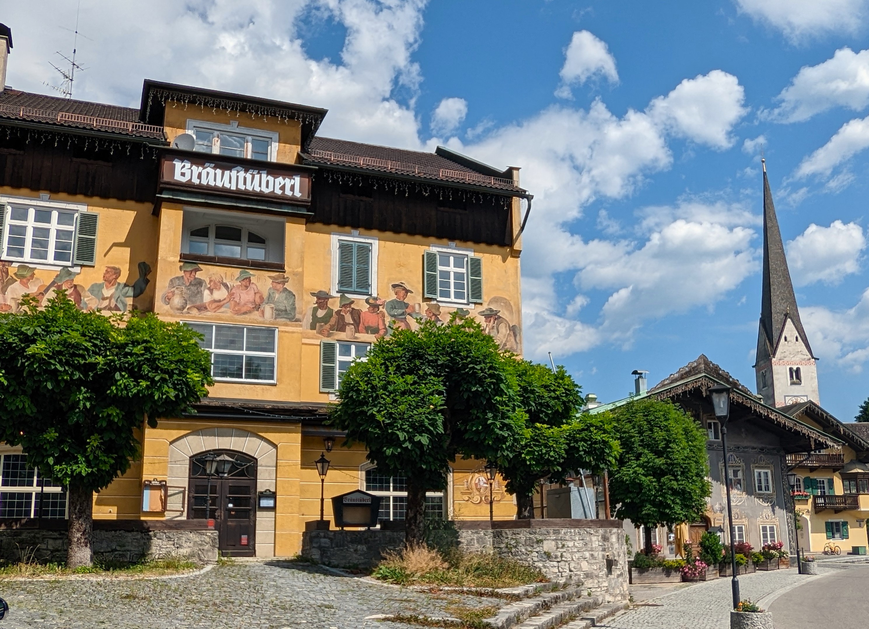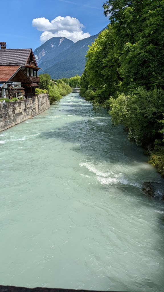 Unser Weg führt durch den Kurpark nach „Alt- Garmisch“ mit den geschichtsträchtigen Lüftlmalereien, authentischen Bauernhäusern und der alten St-Martins-Kurch, einst Mutterkirche im Werdenfels und ein echtes Kleinod. Es scheint, als wäre die Zeit wahrlich stehen geblieben. Das Zugspitzmassiv haben wir dabei immer fest im Blick.