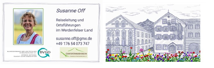 Als der Gästeführerverein Verstärkung brauchte, habe ich mich zur zertifizierten Gästeführerin weitergebildet und mich mit viel Herzblut und einem enormen Interesse an der Heimatgeschichte an die Arbeit gemacht. Und bin bis zum heutigen Tag fasziniert von allem, was ich dabei links und rechts vom Weg erfahre: Lass Dich anstecken von meiner Begeisterung für das Goldene Landl, das Blaue Land, die Ammergauer Alpen und die Alpenwelt Karwendel.